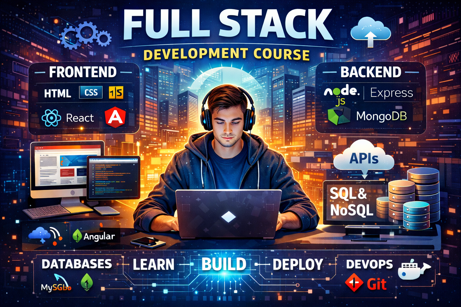 Our Full Stack Development Course is a comprehensive, hands-on program designed to make you a job-ready web developer. This course covers everything from frontend design to backend logic, databases, and deployment, helping you become a complete developer capable of building real-world applications.