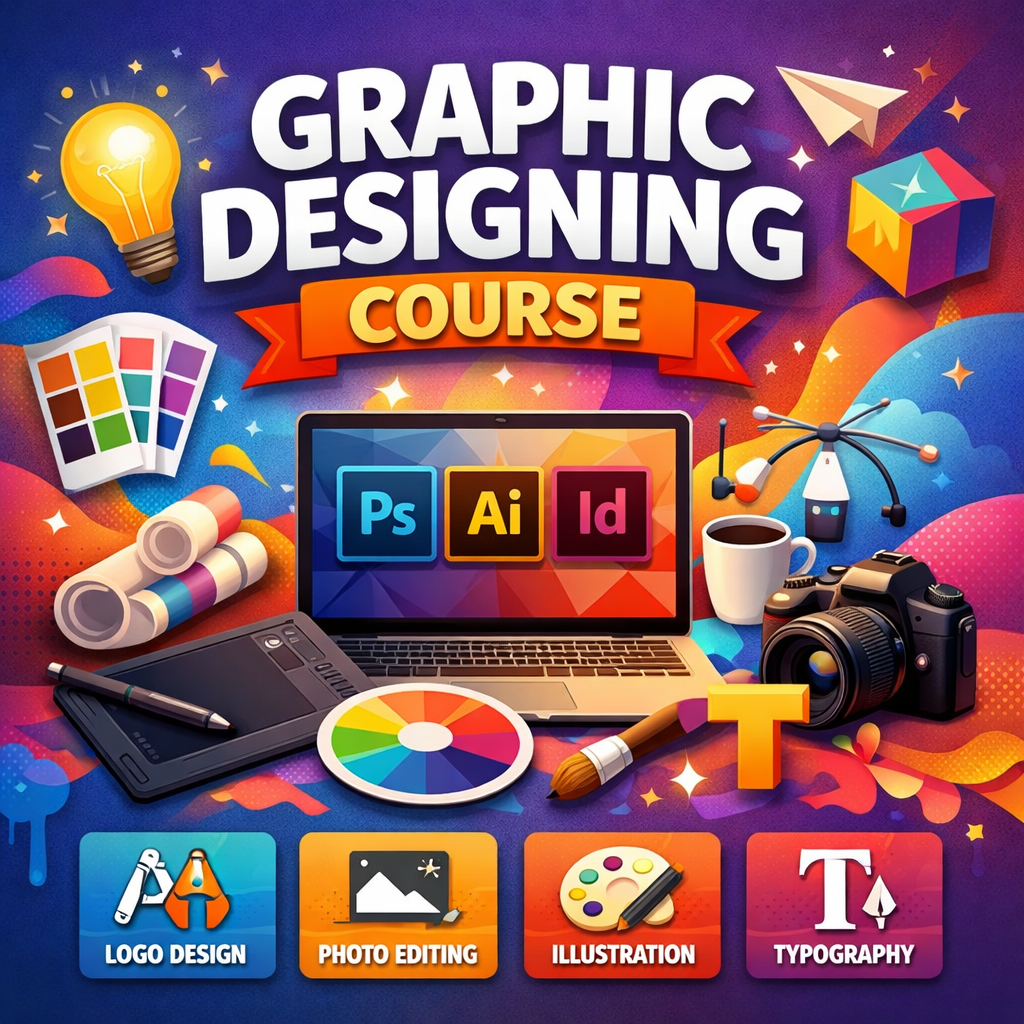 Our Graphic Designing Course is a creative, practical, and industry-oriented program designed to help you become a professional graphic designer. This course focuses on building strong design fundamentals along with hands-on experience using industry-standard tools.